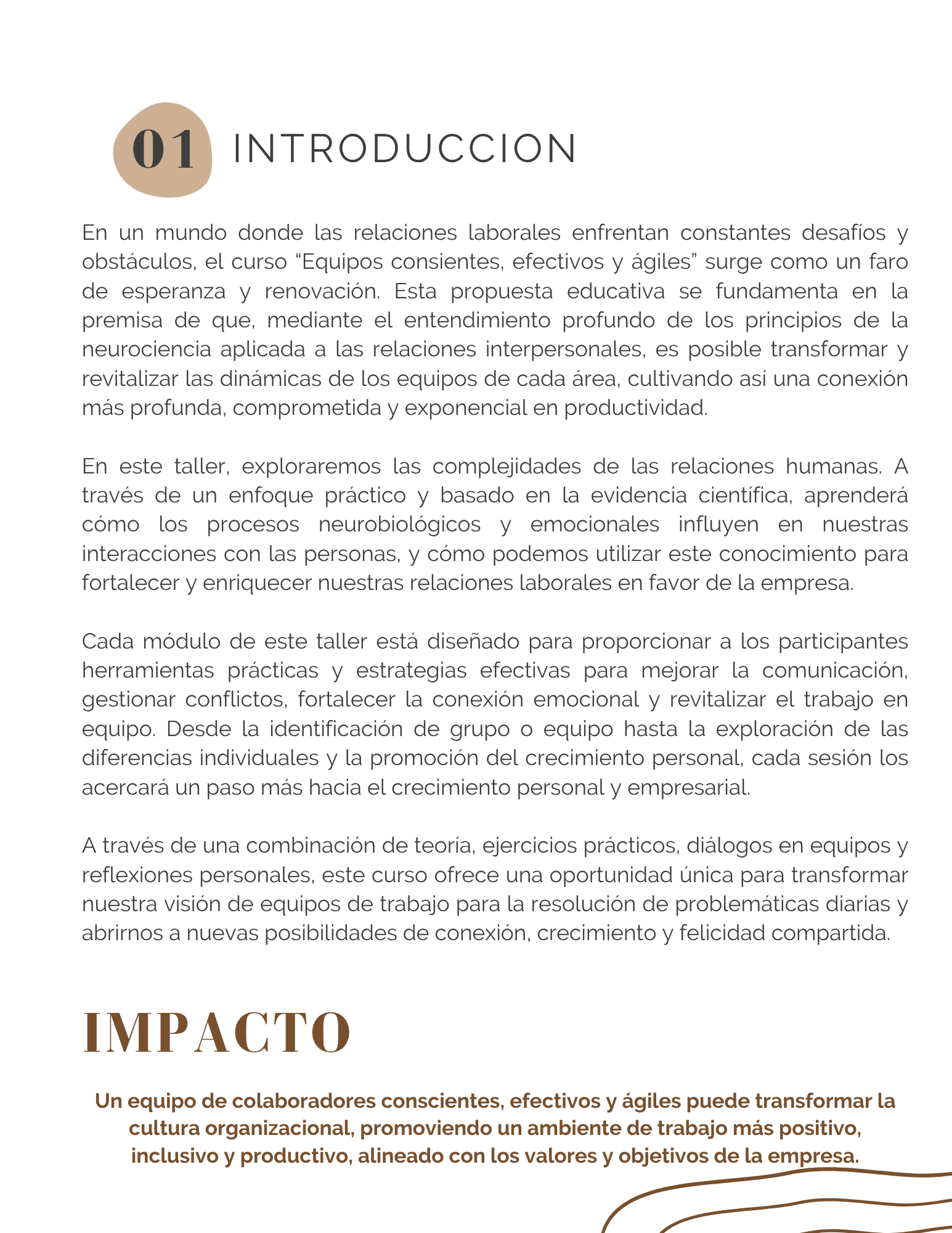 la cohesión y efectividad de sus equipos de trabajo, mejorando la comunicación, la resolución de conflictos y el liderazgo colaborativo.